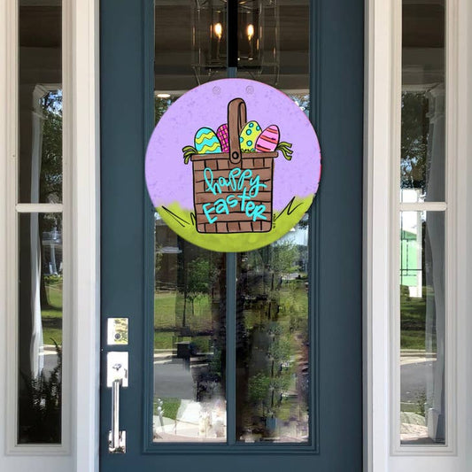 Door Hanger | Purple Happy Easter Basket