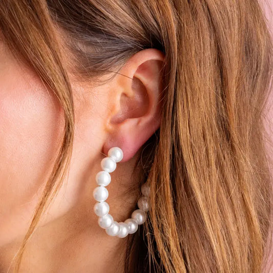 Large Hoop Earrings | Gold-Plated w/ Pearls | Alice