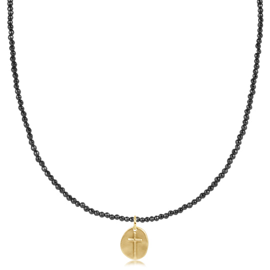 15" Choker Faceted Hematite 2mm Bead | Inspire Small Gold Charm