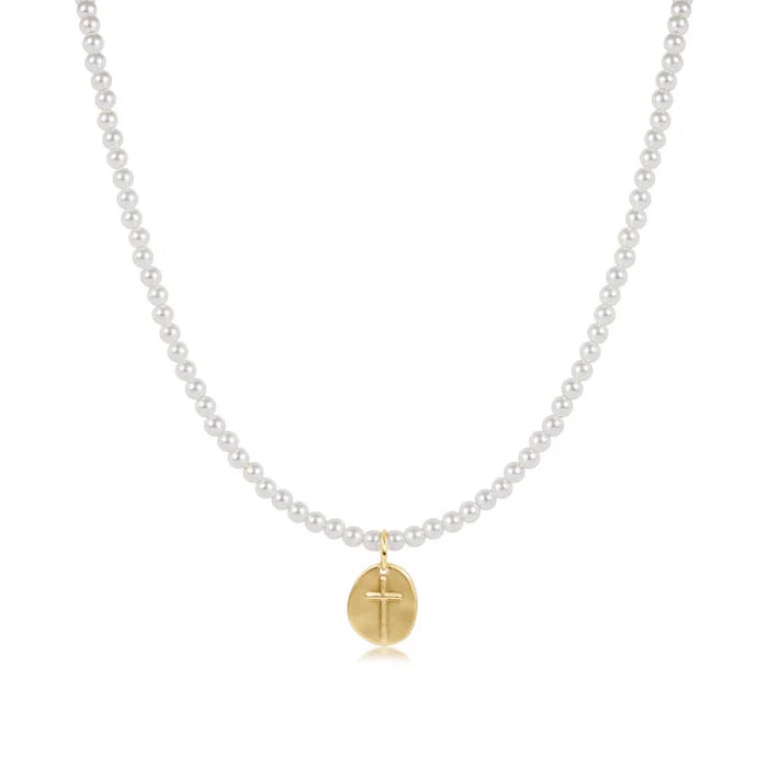 17" Choker Classic Pearl 3mm Bead | Inspire Small Gold Charm