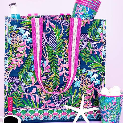 The market shopper tote is the ultimate bag in that it transforms based on your needs. The cute eco bag features gold hardware accents and is made of a lightweight, heavy duty material that is water and tear-resistant for extra support. From the pool, to out and about, this bag will be whatever you need it to be in the moment.